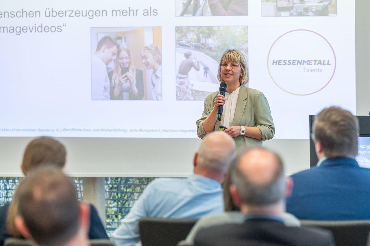 Im Panel-Talk „Best Practices Employer Branding“ diskutierten Expertinnen und Experten aus unterschiedlichen Branchen praxisnahe Ansätze zur Steigerung der Arbeitgeberattraktivität. Die Beispiele aus der Unternehmenspraxis zeigten eindrucksvoll, dass Fachkräftesicherung nicht nur eine Herausforderung, sondern auch eine Chance ist: „Formate wie unser Ausbildungsforum sind wichtige Impulsgeber, um gemeinsam innovative Lösungen zu entwickeln und die Attraktivität der Ausbildung fortlaufend weiter durch Best-Practice-Beispiele zu steigern“, ordnete Dirk Pollert, Hauptgeschäftsführer von HESSENMETALL, bei der Veranstaltung ein.