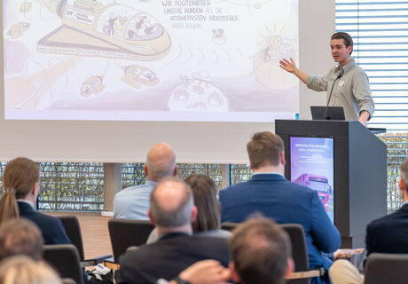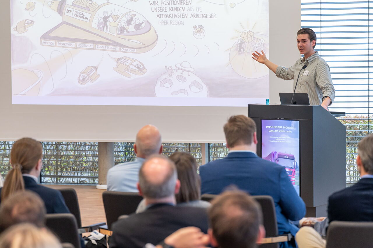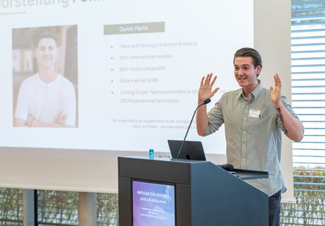 Das Forum startete mit einem Impuls von Philip Herzer, Referent Fachkräftesicherung am IW Köln und am Kompetenzzentrum Fachkräftesicherung (KOFA), der die Erwartungen junger Menschen an die Ausbildung vorstellte.