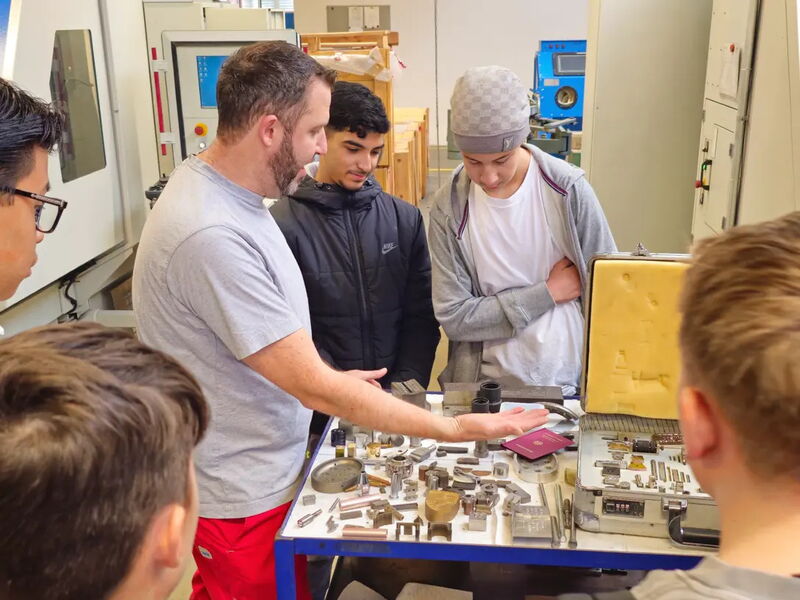 Seit mehr als 100 Jahren bietet die Schoder GmbH ihren Kundinnen und Kunden Metallfertigungstechniken in höchster Präzision und das in beachtlicher Bandbreite. „Von Metallschablonen für Frischkäseverpackungsdeckel, Autoreifen und Stanztechnik für Medikamentenverpackungen ist viel dabei, was uns allen im Alltag begegnet“, sagte Stefan Schmidt, Abteilungsleiter Graveure bei Schoder, während einer der Werksführungen von Steffen Speck, Industriemeister Metall im Unternehmen. Die Schoder GmbH hat sich auf die Herstellung von präzisen Metallteilen spezialisiert. Das Portfolio des Unternehmens umfasst unter anderem CNC-Frästechnik, Industriegravuren, Blechbearbeitung, Erodiertechnik sowie Sieb- und Digitaldruck. Seit mehr als 100 Jahren vertrauen namhafte Kunden aus unterschiedlichsten Branchen auf die Schoder GmbH. Sie kommen unter anderem aus der Lebensmittel- und Kosmetikindustrie, der Luftfahrt, dem Werkzeugbau sowie der Fahrzeug- und Medizintechnik. „Wir bilden seit dem Jahr 1980 aus und suchen insbesondere Nachwuchsfachkräfte in den Berufen Zerspanungsmechaniker oder