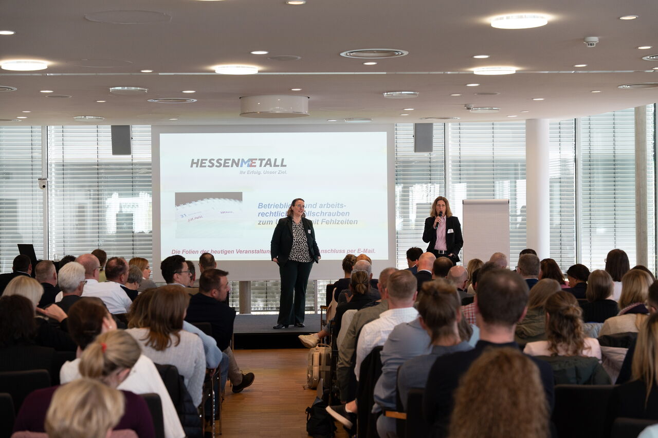 Mehr als 100 Teilnehmende waren der Einladung von HESSENMETALL gefolgt und hörten spannende und hochinteressante Vorträge unter anderem zur Mitarbeiterführung, dem Betrieblichen Eingliederungsmanagement oder auch zur Gefährdungsbeurteilung. Neben viel fachlichem Input gab es auch Raum für Diskussionen und den Erfahrungsaustausch mit anderen Unternehmen. Durchgeführt wurde die Veranstaltung von der Abteilung Arbeitswissenschaft und dem Center of Competence (CoC) Arbeitsschutz von HESSENMETALL.