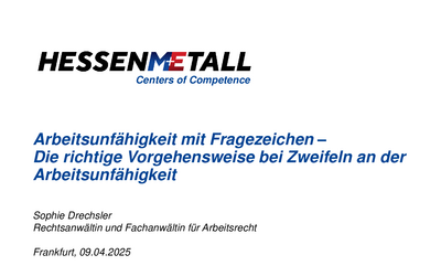 Deutschland hat einen Rekordkrankenstand erreicht, der die Arbeitgeber rd. 77 Mrd. Euro im Jahr kostet. Aus diesem aktuellen Anlass fand am 09.04.2025 im Haus der Wirtschaft Hessen in Frankfurt eine ganztägige Veranstaltung zum Thema „Betriebliche und arbeitsrechtliche Stellschrauben zum Umgang mit Fehlzeiten“ statt.