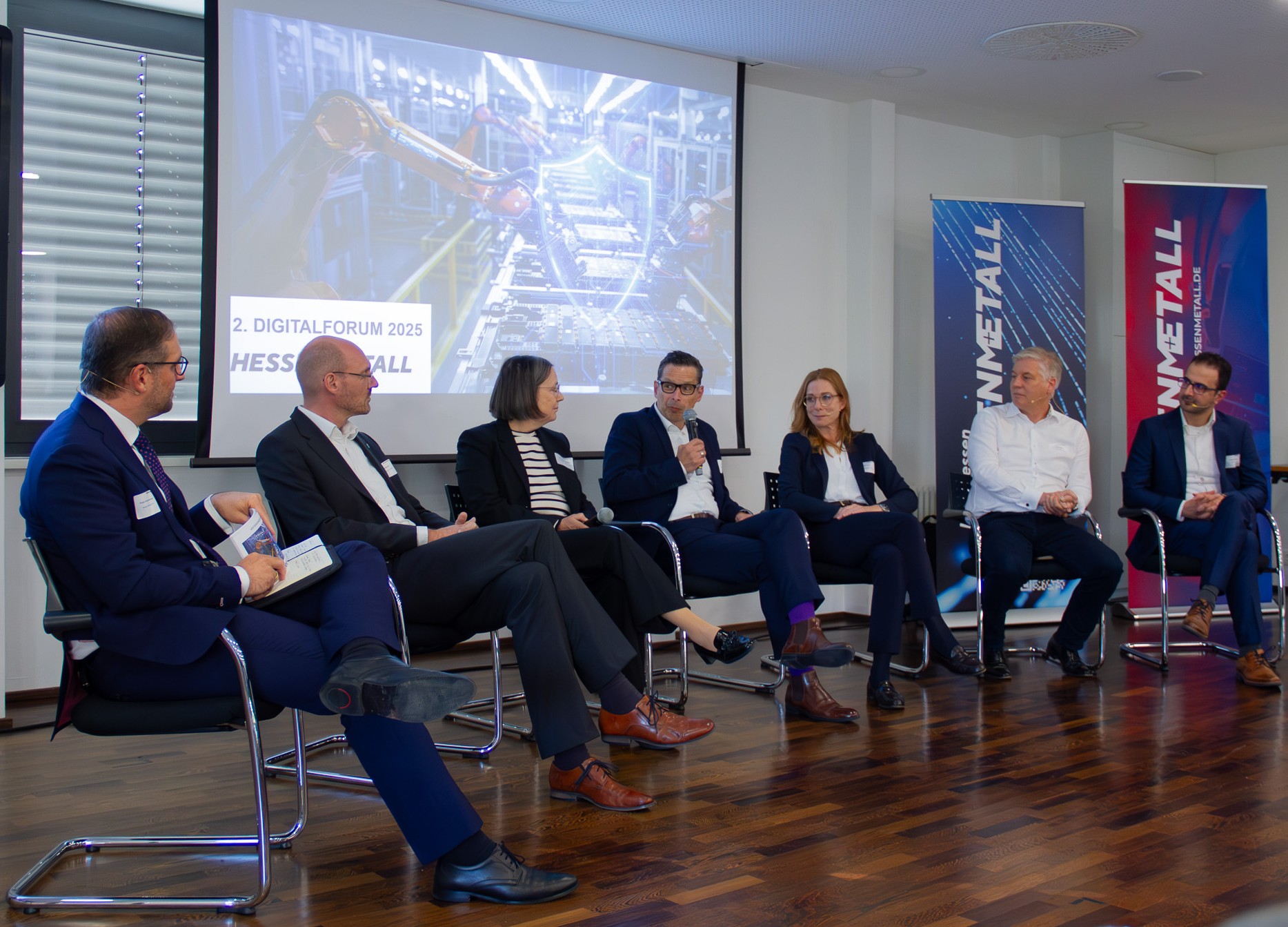 Wie Deutschland technologisch fit und verteidigungsfähig werden kann – und welche Rolle dabei insbesondere die hessische Metall-, Elektro- und IT-Industrie spielt – wurde am 01.10.2025 im Rahmen des 2. DIGITALFORUMS „Technologie. Sicherheit. Verantwortung. Die Industrie als Schlüssel zur Verteidigungsfähigkeit“ im Haus der Arbeitgeberverbände Nordhessen intensiv diskutiert. „Diese neue Sicherheitsarchitektur braucht eine Industrie, die leistungsfähig, digital und resilient ist – fähig, im Krisenfall stabil zu produzieren, Lieferketten zu sichern und Innovationen schnell umzusetzen. Unsere Metall-, Elektro- und IT-Industrie ist dabei unverzichtbar: in der Produktion ebenso wie in Software, IT und Cybersecurity.“, so Dirk Pollert, Hauptgeschäftsführer HESSENMETALL, in seinem Grußwort.