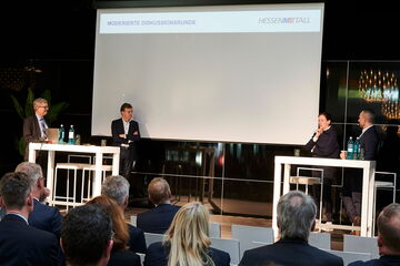 Um konkrete Schritte in eine klimaneutrale Zukunft ging es beim Spitzentreffen der hessischen Metall-, Elektro- und IT-Industrie – und Unternehmen gaben Einblicke in den betrieblichen Alltag.