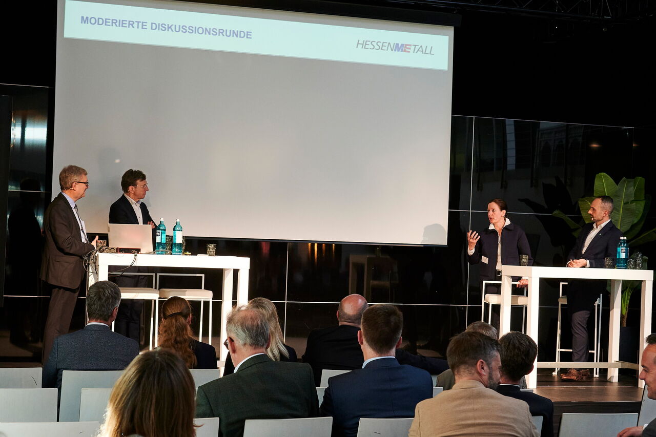 Hessenforum 2023. Um konkrete Schritte in eine klimaneutrale Zukunft ging es beim Spitzentreffen der hessischen Metall-, Elektro- und IT-Industrie – und Unternehmen gaben Einblicke in den betrieblichen Alltag
