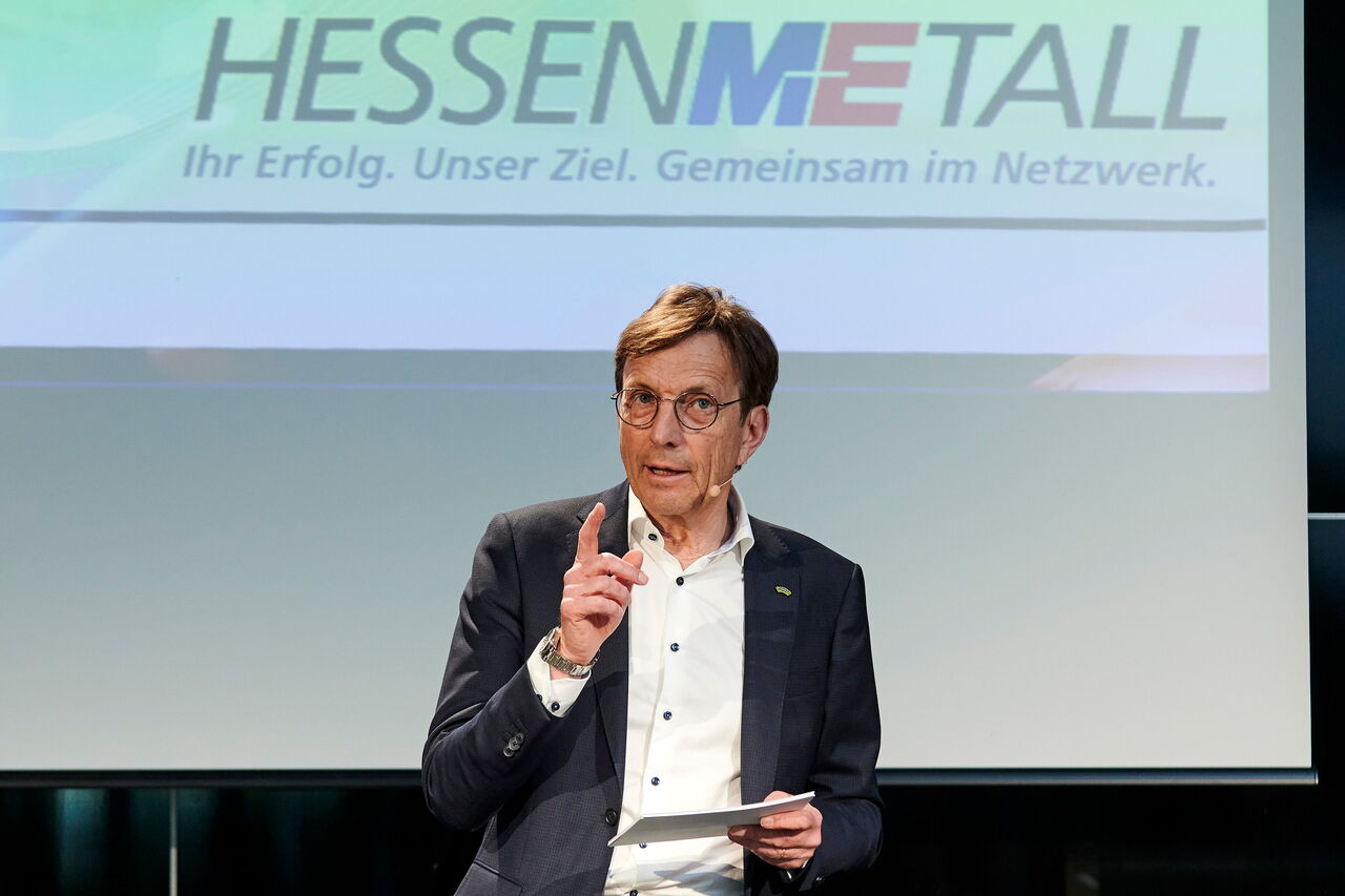 Eppstein. „Mehr unternehmerische Freiheit für mehr Nachhaltigkeit“ forderte Wolf Matthias Mang, Vorstandsvorsitzender von Hessenmetall gleich zu Beginn in seiner Eröffnungsrede zum 33. Hessenforum vor rund 170 Gästen im Botanical in Eppstein. Der Unternehmer: „Nachhaltige Industrie ist keine Schöpfung aus dem Nichts, sondern sie ist die radikale Erneuerung früherer Innovationen im Licht neuer Erkenntnisse und der Schüssel, um Wachstum und Klimaschutz zu vereinbaren.“