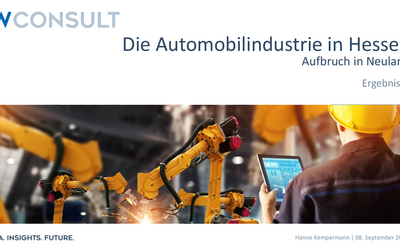 Ebenso haben große Automobilhersteller wie Opel/Stellantis, VW Baunatal, Hyundai und Daimler Trucks hier wichtige Produktionsstätten oder Designzentren. Dieses Bild wollen wir stärker ausmalen mit einer Automotive-Studie Hessen, die wir bei unserer Denkfabrik IW Köln und ihrer Analysetochter IW Consult in Auftrag gegeben haben. Die Ergebnisse finden Sie nachfolgend.