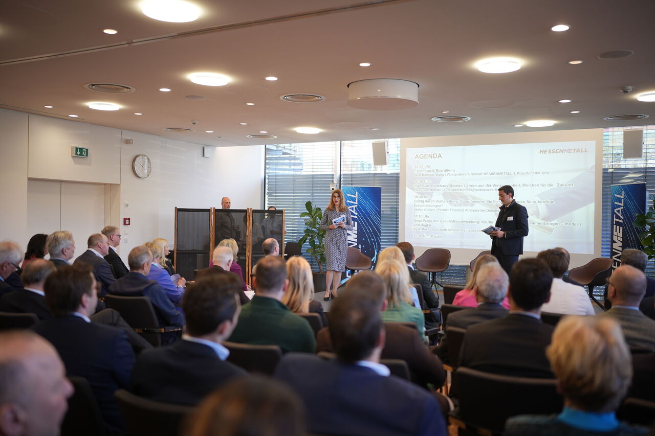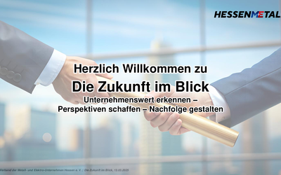 „Wenn man ein Familienunternehmen führt, lernt man früh, dass Tradition nicht bedeutet, die Asche zu bewahren, sondern das Feuer weiterzugeben.“ Mit diesen Worten eröffnete Wolf Matthias Mang, Vorstandsvorsitzender von HESSENMETALL und Präsident der Vereinigung der hessischen Unternehmerverbände (VhU), die Veranstaltung „Die Zukunft im Blick", die am 13.03.2025 mit vielen Informationen, wertvollen Einblicken und Perspektiven zum Thema Unternehmensnachfolge begeisterte. HESSENMETALL adressierte mit dem Pilot-Event in Zusammenarbeit mit Deloitte die Frage: Wie kann es vor dem Hintergrund des demographischen Wandels und einer eklatanten Nachfolgelücke gelingen, den deutschen Mittelstand erfolgreich in die nächste Generation zu führen.