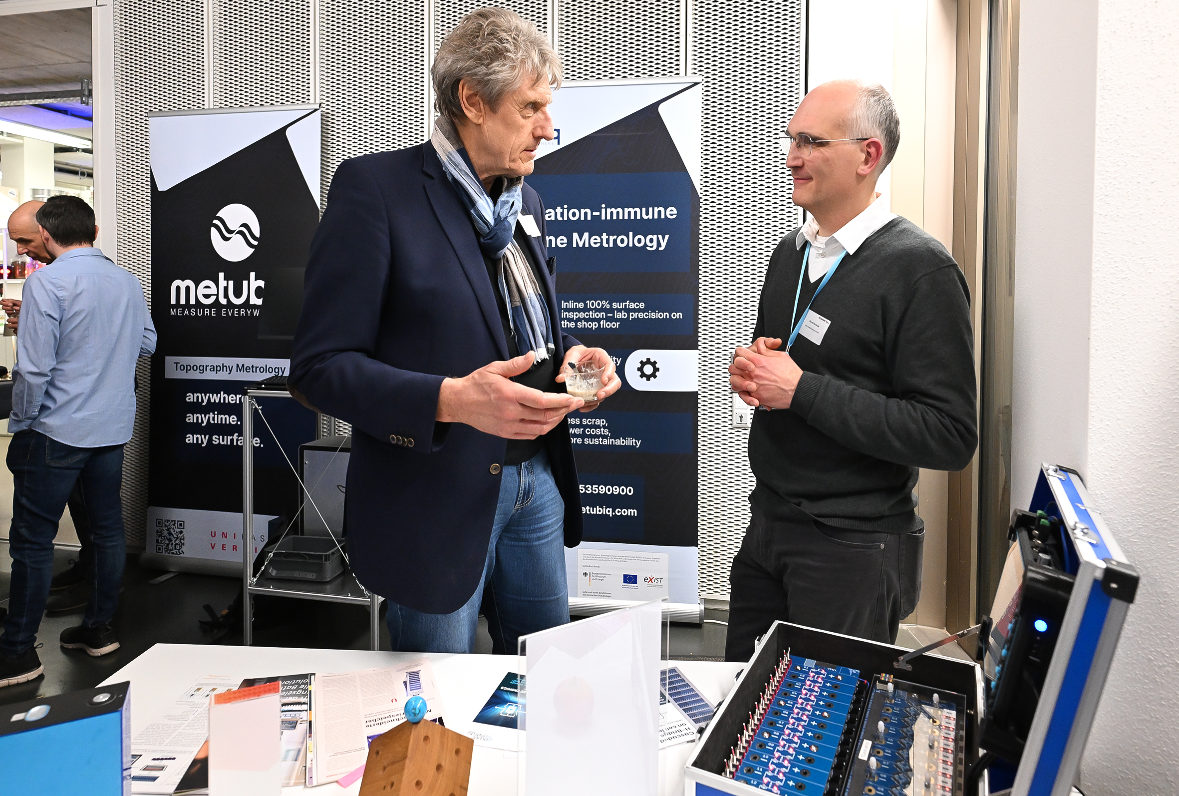 Nach den ersten Einblicken in die praxisorientierte Forschung bot die TransferXPO Gelegenheit zum vertieften Austausch. Im Ausstellungsbereich präsentierten alle Beteiligten an Stände und Anlaufpunkten. Die Teilnehmenden konnten dort das Gehörte weiter diskutieren und sich über Projektskizzen mit konkreten Kooperationsangeboten aus Unternehmen, Hochschulen und dem regionalen Innovationsökosystem informieren. Alle 13 Projektskizzen sind zusätzlich in der Liste der Aktiven (Link unter dem Artikel) sowie zusammen mit allen Materialien im Downloadbereich verfügbar.