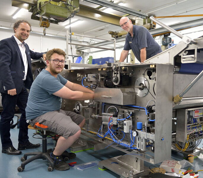 Die Exportquote des Spezialmaschinenbauers liegt bei knapp 80 Prozent. „Besonders wichtig ist für uns der US-Markt, weil die Amerikaner wirklich große Naschkatzen sind“, erklärt OKA-Geschäftsführer Matthias Drees beim aktiv-Besuch.