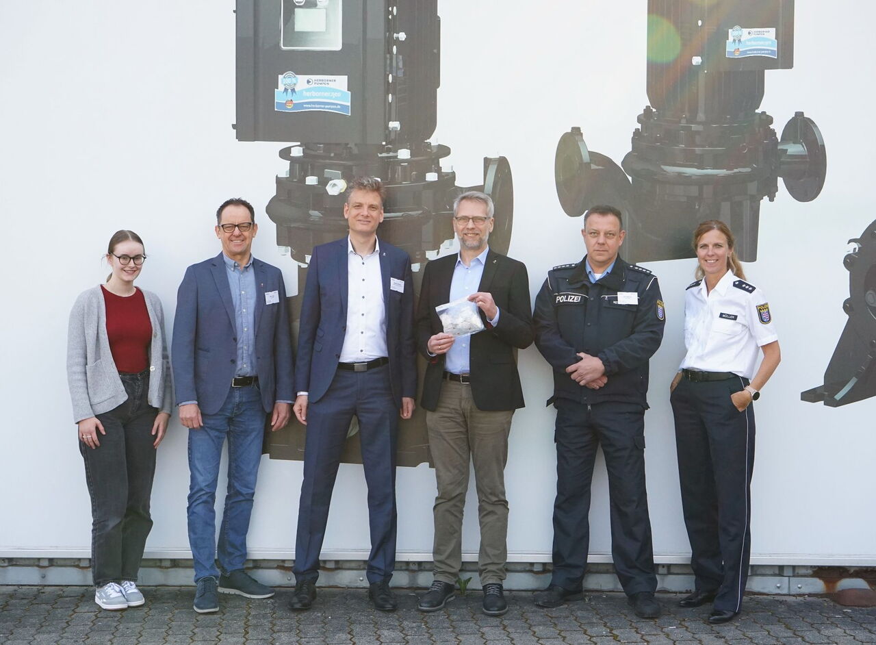 Unter dem Slogan „Schleife tragen - Danke sagen“ läuft seit mehreren Jahren die Schutzschleifen-Kampagne des Hessischen Ministeriums des Innern, für Sicherheit und Heimatschutz. Gemeinsam mit HESSENMETALL Mittelhessen unterstützt auch das Unternehmen Herborner Pumpentechnik die Aktion, um ein sichtbares Zeichen für Respekt, Solidarität und Dankbarkeit gegenüber Polizei, Feuerwehr und Rettungskräften zu setzen. Hierzu übergaben Vertreterinnen und Vertreter der mittelhessischen Polizei Geschäftsführer Wolfram Kuhn ein Paket mit den markanten blau-weiß-roten Schleifen bei einem gemeinsamen Termin im Unternehmen.