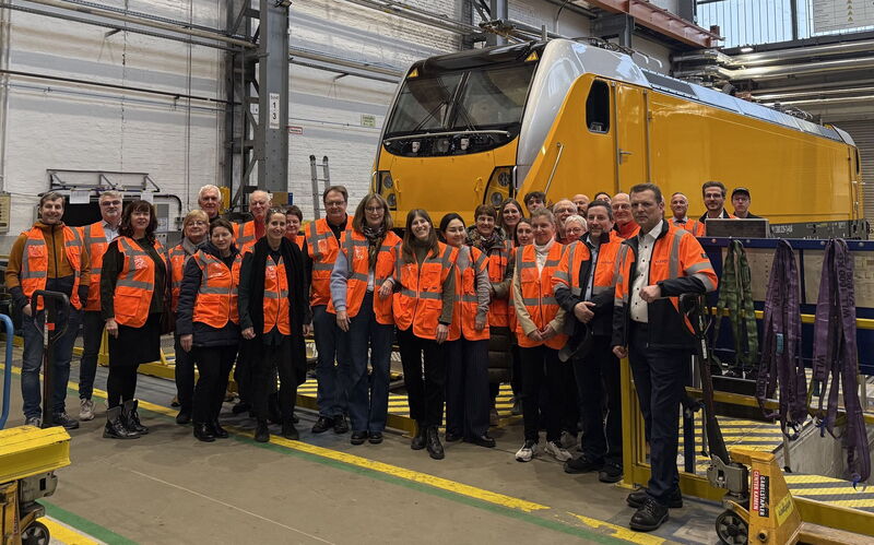 Bevor es los ging, stand für die Gäste zunächst eine umfassende Sicherheitsunterweisung an. Während des Rundgangs erhielten die Teilnehmer exklusive Einblicke in die Produktion der Traxx-Lokomotiven, die für ihre Zuverlässigkeit und Effizienz im Schienenverkehr bekannt sind. Dabei informierte der Werksleiter: