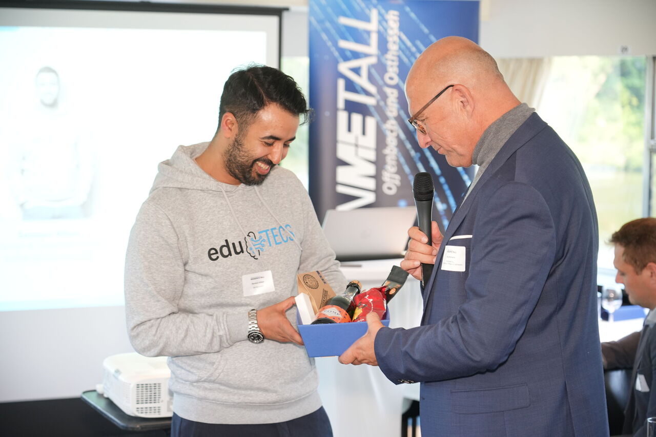 Am 08.05.2025 hat HESSENMETALL Offenbach und Osthessen seine erste M+E-Cruise veranstaltet. Dies ist die Jahresveranstaltung vom örtlichen Arbeitgeberverband der Metall-, Elektro- (M+E) und IT-Industrie für Mitglieder, Kooperationspartnerinnen sowie -partner und verschiedene Akteurinnen und Akteure aus Politik, Wirtschaft und Gesellschaft. In diesem Jahr fand das Format M+E-Forum in Kooperation mit der Primus-Linie als Mainschifffahrt – M+E-Cruise – statt. Das Rahmenprogramm des After-Work-Events gestalteten verschiedene Firmen der regionalen Branche, indem sie mit ihren Unternehmensimpulsen die enorme Bandbreite an Expertise, Tradition und Innovation in Offenbach und Osthessen eindrucksvoll präsentierten. Impulsgeberinnen und -geber waren: Isabelle Himbert (Geschäftsführerin Arno Arnold GmbH), Senouci Allam (Geschäftsführer EduTecs GmbH) sowie Valentin Dalmer (Geschäftsführer Dalmer Pulverbeschichtung GmbH), Sebastian Brähler (Geschäftsführer Kaleidos:code GmbH) und Christian Romeis (Geschäftsführer Romeis Engineering GmbH).