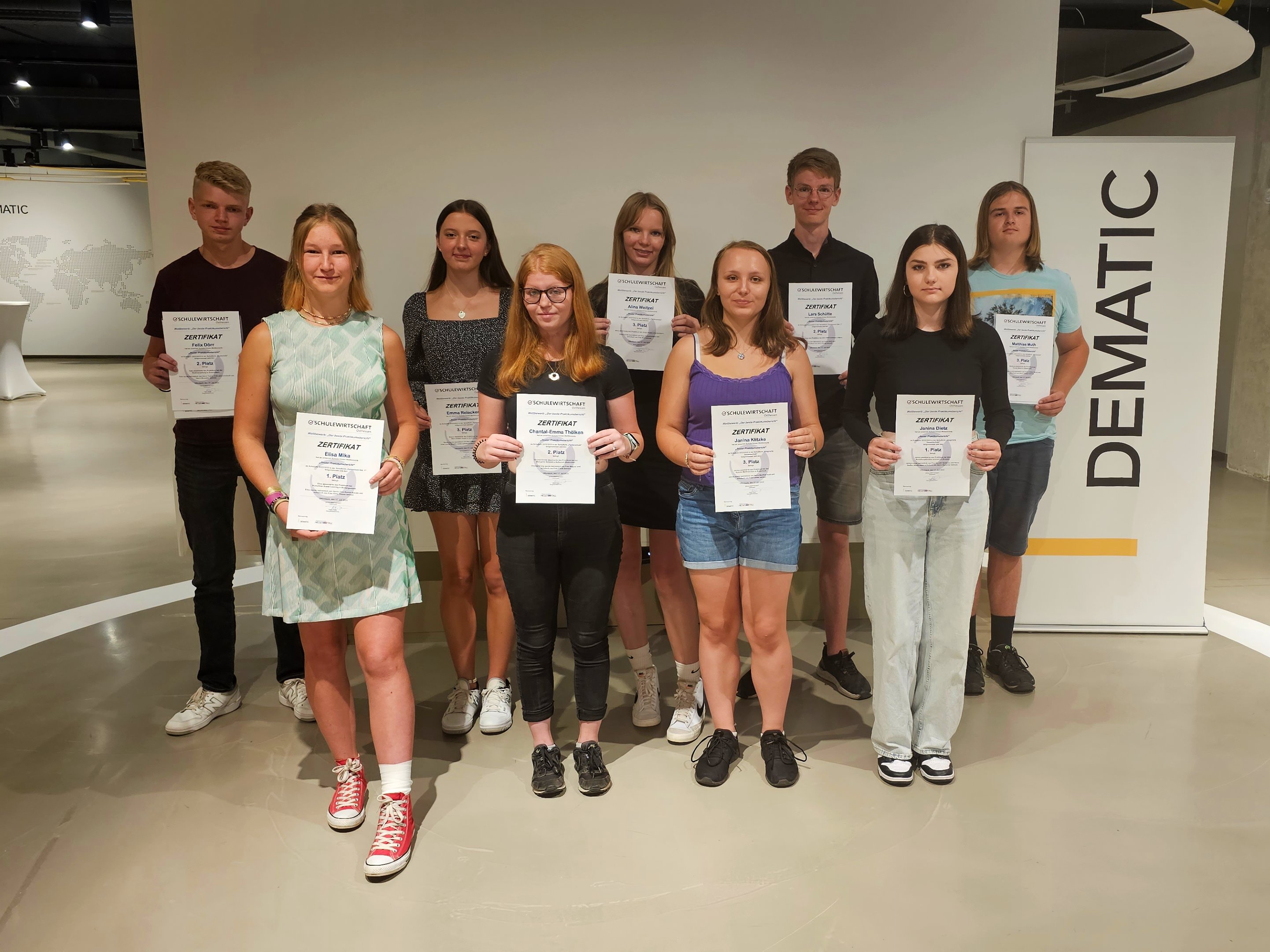Die Siegerinnen und Sieger bilden mit der Liste ihrer Praktikumsbetriebe und -institutionen eine enorme Bandbreite an Berufsbildern ab. Von Journalismus, Verwaltung, Handwerk, Kosmetik bis hin zum Bestattungsinstitut sind unterschiedlichste Branchen vertreten. Neben der Ehrungsveranstaltungen hatten die Schülerinnen und Schüler sowie die weiteren Gäste außerdem Gelegenheit das Imagination Center von Dematic mit Sebastian Ahl, Marketing Manager DACH + Benelux bei Dematic, zu erkunden. Er hatte die Veranstaltung mit Dematic als Gastgeber gemeinsam mit SchuWi Osthessen organisiert. Das Imagination Center ist ein interaktiver Showroom des weltweit tätigen Intralogistik-Unternehmens, das intelligente automatisierte Lösungen – beispielsweise in der Logistik oder der Lieferkettenautomatisierung – entwickelt, baut und unterstützt.