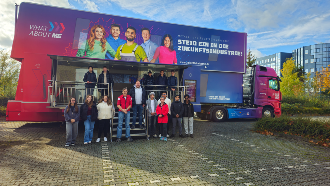 -mechanikerin sowie Maschinen- und Anlagenführerin oder -führer. Bei unseren M+E-InfoTruck-Einsatztagen für die Schülerinnen und Schüler der Adolf-Reichwein-Schule in Langen stand die Berufsorientierung zum Mitmachen im Vordergrund. Besonders wichtig sind uns außerdem die Einblicke in unseren Arbeitsalltag und der gegenseitige Austausch“, so Markus Friedrich, Betriebsleiter bei Schoder.
